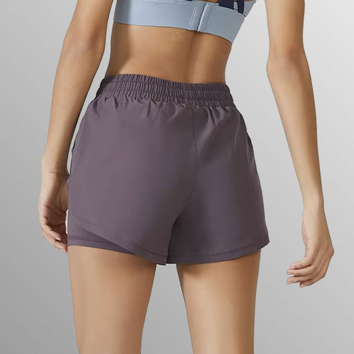 Design 2 in 1 : pantaloncini esterni per un look moderno e coprente, con pantaloncini interni a compressione che offrono supporto muscolare e stabilità.