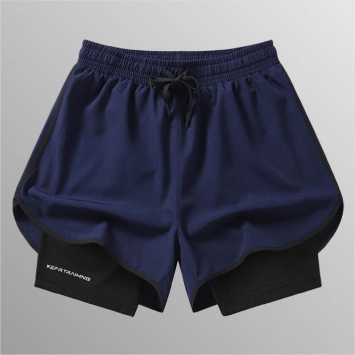 - Pantaloncini doppi, pantaloncini a compressione sotto e pantaloncini in poliestere sopra, due in uno.
