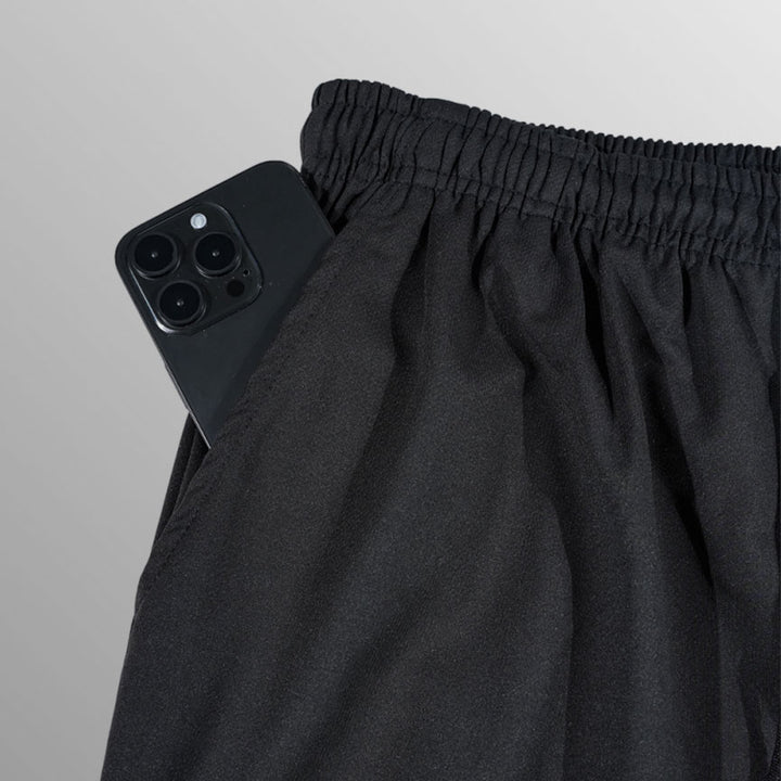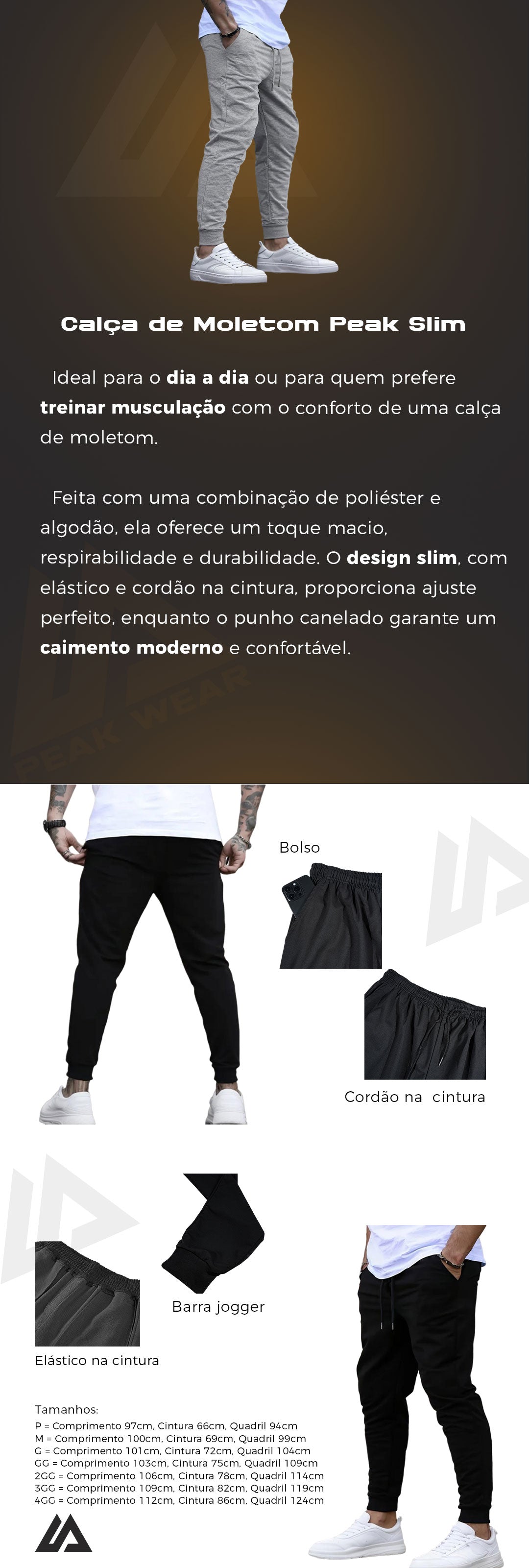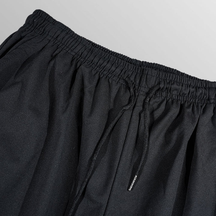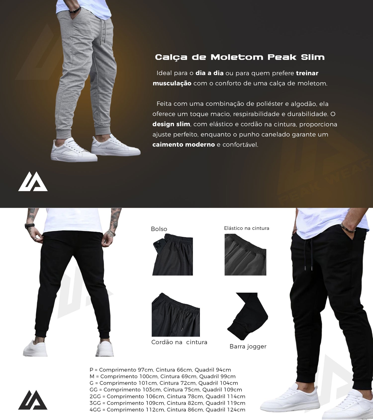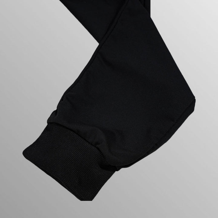 Realizzato in un mix di poliestere e cotone, offre morbidezza, traspirabilità e resistenza. Il design sottile, con elastico e coulisse in vita, offre una vestibilità perfetta, mentre i polsini a costine assicurano un look moderno e confortevole.